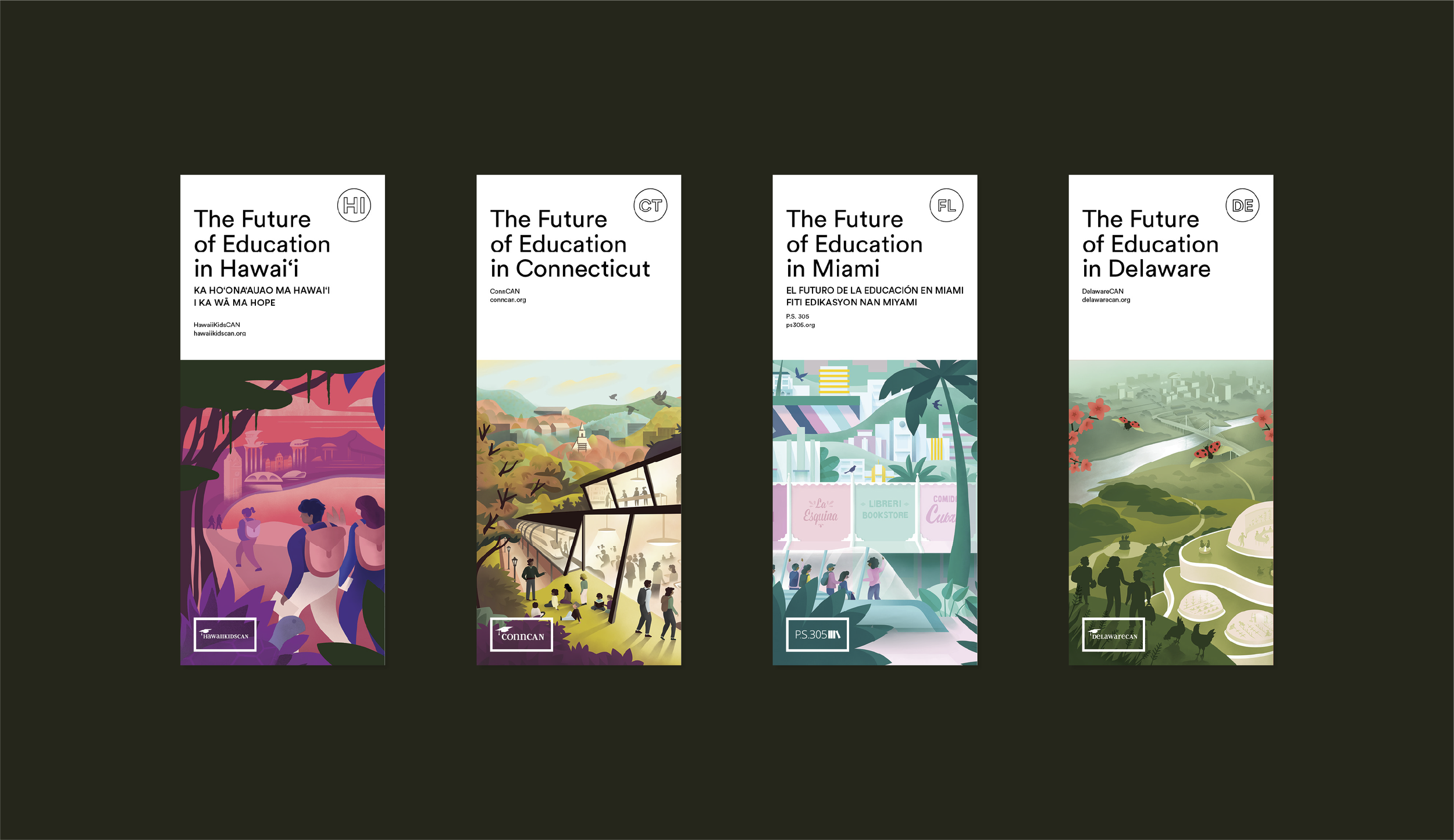 Þetta stórskemmtilega verkefni var unnið í góðri samvinnu bæði innan House9 Design og við 50CAN sem lýstu útkomunni sem „stórkostlegu safni stefnusýna sem kynntar eru á einstakan hátt: sem ferða-leiðarvísar um framtíð menntunar.“